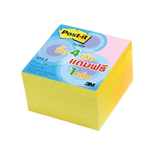 กระดาษโน้ตPOSTIT3*3 654-4VAD 3Mเหลื...